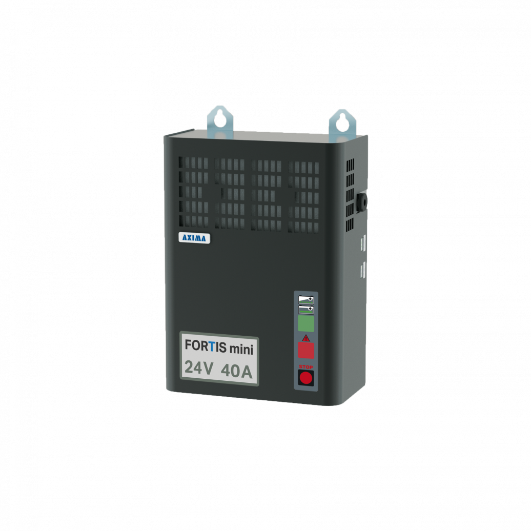 FORTIS Mini-Ladegeräte verwenden Wechselrichter mit Hochfrequenzschaltung über MOSFETs. Das Laden wird von einem Mikroprozessor-Steuerungssystem gesteuert. Wichtige Status werden durch LEDs angezeigt. Je nach Größe sind die Ladegeräte in drei Arten von Schränken eingebaut - S, M und L.